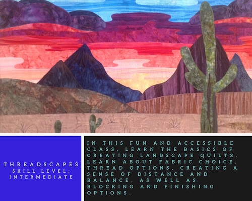 Description: Get ready to drop your feed dogs with Swan as we learn to use this beautiful free motion technique to build detailed landscapes with simple stitching and blended color. Whether your passion is art quilting or you're simply looking to embellish your projects, this class can give you the basics to begin using your threads to greater advantage. From backgrounds to focal points you'll learn everything you need to know to start making lovely landscapes of your own!