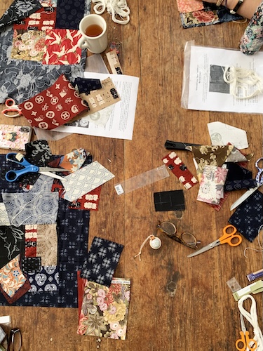 Kit Contents: Backing/base fabric for the project, unlimited scraps, sashiko thread, sashiko needles, palm thimble